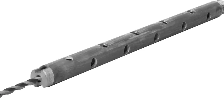 Keskituki G ½ UDKB, jossa on reiät porauspölyn poistamiseen porausreiästä pölyn poistamiseen imuroottorilla (tuotenro 181160 R), mukana kovametallinen kivipora Ø8 mm.