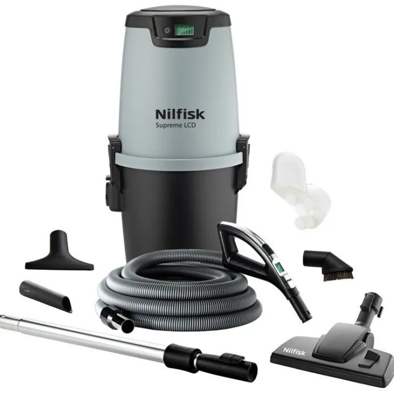 Nilfisk All-in-1 LCD Deluxe on käytännöllinen keskuspölynimuri, joka sopii useimpiin koteihin. Koneessa on itsepuhdistuvat suodattimet ja sitä voidaan käyttää sekä pölypussin kanssa (20/25 litraa), että ilman, joka on tyhjennettävä vain pari kertaa vuodessa.