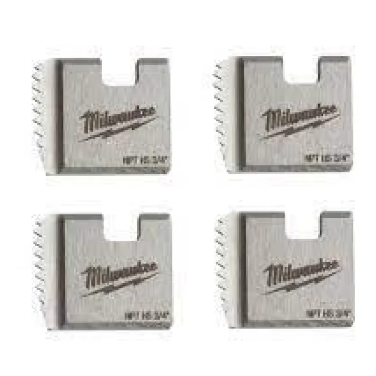 Milwaukee 48361108 on 4-osainen sarja kierreleukoja (FPTD 3/4″ NPT HS) käytettäväksi Milwaukee -kierteityskoneiden kanssa. HS-leuat parhaan suorituskyvyn saavuttamiseksi ruostumattomissa teräsputkissa.