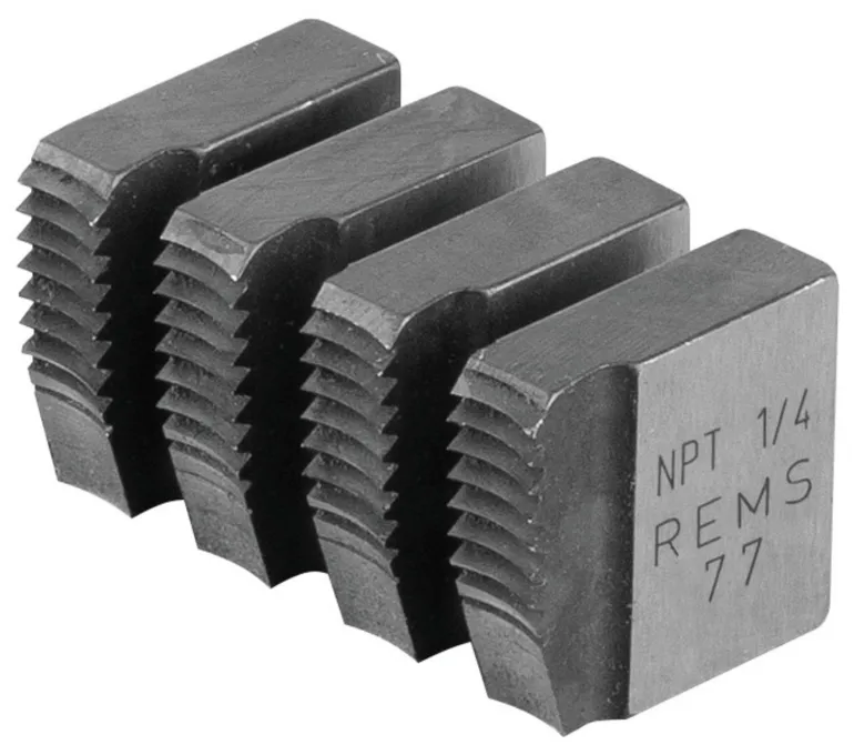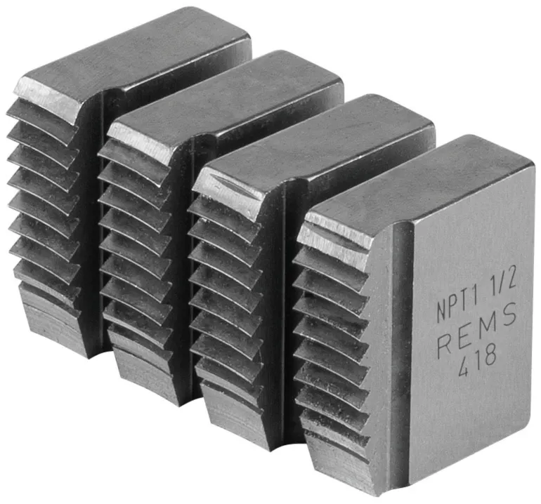 Leikkuuterät, optimaalinen leikkuugeometria ja putkikierre, NPT, kartio, oikea, kartiomainen putkikierre ASME B1.20.1. Sitkeää, kovaa erikoiskarkaistua terästä, pitkä käyttöikä.