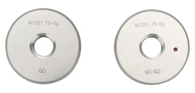 Pari kierrerengastulkkeja – yksi kappale GO-menorengastulkki ja yksi kappale NO-GO-hylkyrengastulkki. Kierrerengastulkit ovat ISO-metrisiä ja myydään pareittain.