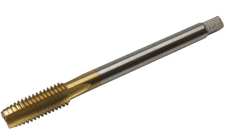 Kierretappi HSS-teräksestä TIN-pinnoitetulla kärjellä. Tuumakokoinen, standardi UNF-kierrenousulla.