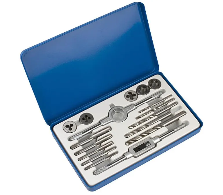 Kierretyökalusarja (HSS) sisältäen 17 osaa. Sarja sisältää kierrepakkavääntimen M25 25 mm:n kierrepakalle (pituus 205 mm), vääntiön M3-M12:n kokoisille kierretapeille (pituus 200 mm), kierretappeja ko`oissa 6-1,0, 7-1,0, 8-1,25, 10-1,5, 12-1,75, kierrepakkoja ko`oissa 6-1,0, 7-1,0, 8-1,25, 10-1,5, 12-1,75 sekä poranteriä ko`oissa 6-1,0, 7-1,0, 8-1,25, 10-1,5, 12-1,75.