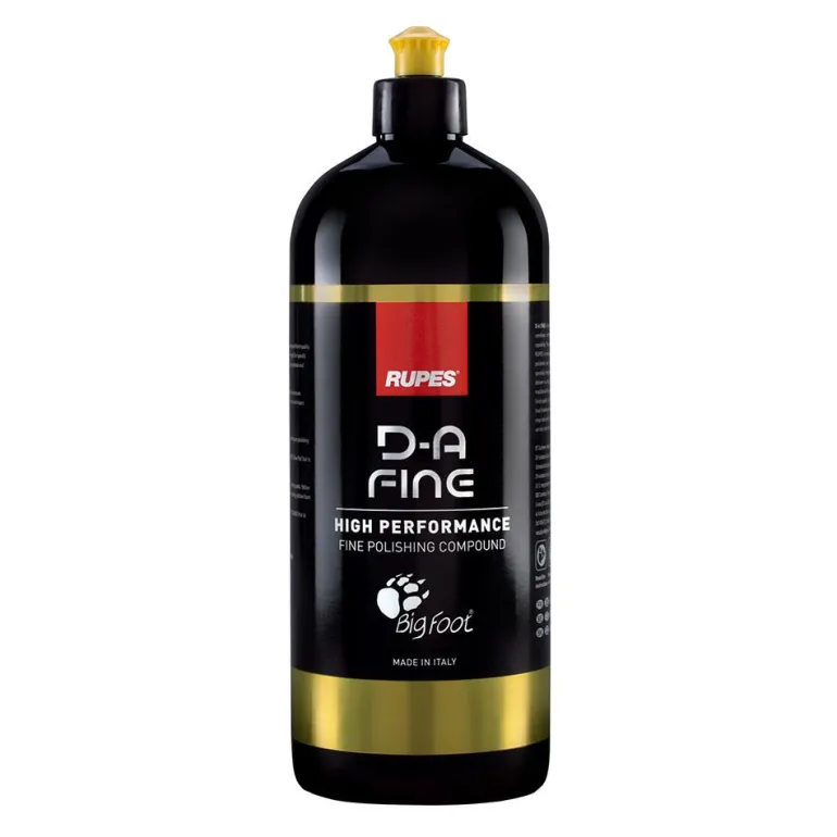 D-A FINE -kiillotusaine yhdistää tietyn työstötason kiiltoon ja viimeistelyyn. Sopii toiseen vaiheeseen naarmujen poistamisen jälkeen D-A COARSE -aineella tai yksivaiheisena tuotteena yhdessä keltaisen villa- tai vaahtomuovilaikan kanssa. Jättää viimeistelyn lähes kaikille materiaaleille, kuten maalille, gelcoatille tai vernissalle. Tuote on helppo pyyhkiä pois, jotta herkkiä pintoja ei naarmuteta mikrokuituliinalla tarpeettomasti. Sopii Rupesin oskilloivaan kiillotusjärjestelmään.