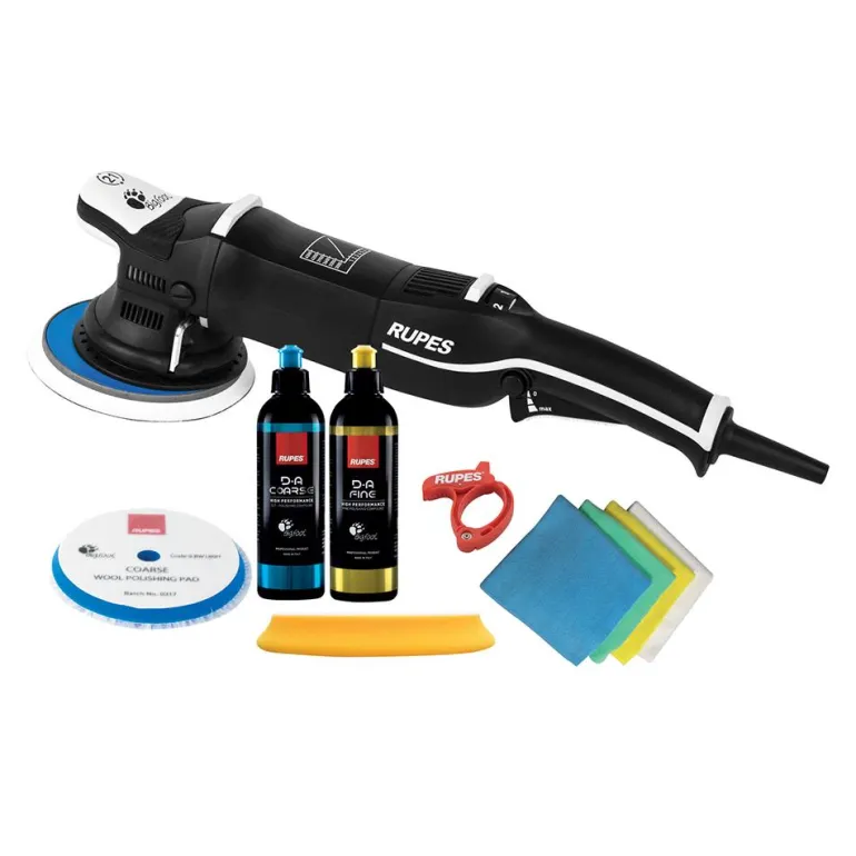 Oskilloiva kiillotuskone progressiivisella liipaisimella. Epäkeskoliikkeen suuruus 21 mm, estää hologrammin muodostumisen. Kumikorvakkeet takana takaavat, että kone on vakaa. Valkoinen kumikahva nokan päällä.