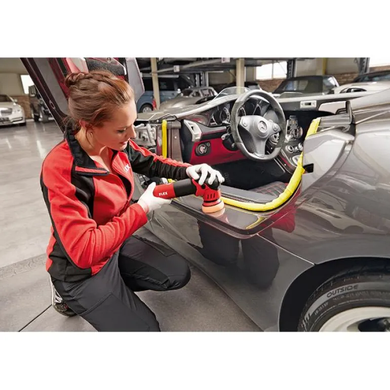 FLEX XFE 7-12 80 täydentää erinomaisesti isompia kiillotuskoneita. Vapaasti pyörivää epäkeskokiillotuskonetta voi käyttää moniin eri käyttökohteisiin, ja sillä yltää kohteisiin, joihin muilla kiillotuskoneilla on vaikea päästä. Näin saat ajoneuvolle lisäkiiltoa. Kiillotuskoneessa on matala ja kompakti vaihteisto, jolla saat mahdollisimman pienen etäisyyden kiillotettavaan pintaan. Siten konetta voidaan käyttää tehokkaasti kaikissa asennoissa. Kiillotuskoneessa on VR-mikroprosessoritekniikka, joka pitää kierrosluvun samana kuormituksesta riippumatta, sekä pehmeä käynnistys, joka ehkäisee nykäisyjä käynnistyksessä. Tämä on tärkeä ominaisuus kiillotuksessa. Uudelleenkäynnistymissuoja, joka estää koneen käynnistymisen vahingossa virtakatkon jälkeen, ylikuormitussuoja, kierrosluvun säätö ja lämpötilan valvonta.