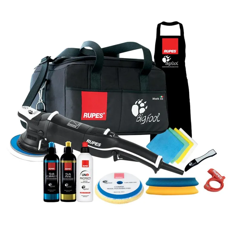 Oskilloiva kiillotuskone progressiivisella liipaisimella. Epäkeskoliikkeen suuruus 21 mm, estää hologrammin muodostumisen. Kumikorvakkeet takana takaavat, että kone on vakaa. Valkoinen kumikahva nokan päällä.