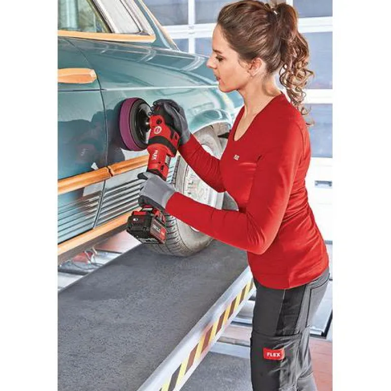 Litteän vaihteiston ansiosta kiillotuskoneiden etäisyys työpintaan on pienempi, ja siten konetta voidaan käyttää turvallisesti kaikissa asennoissa ja se sopii ahtaisiinkin kohteisiin. Ergonominen Softgrip-otealue. FLEX PE 150 18,0-EC:tä on helppo ohjata tarkasti ja ota tuntuu mukavalta ja varmalta.