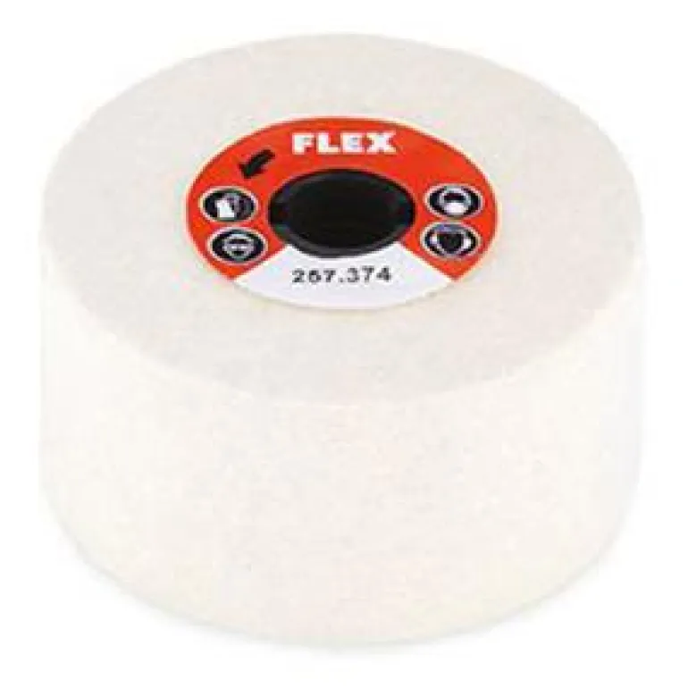 FLEX 257374 on pehmeästä, elastisesta kiillotushuovasta valmistettu kiillotusrulla, jonka mitat ovat 100 Ø x 50 mm. 2 rullaa tarvitaan korkeakiillotukseen kiillotustahnalla ja kiillotusvoiteella.