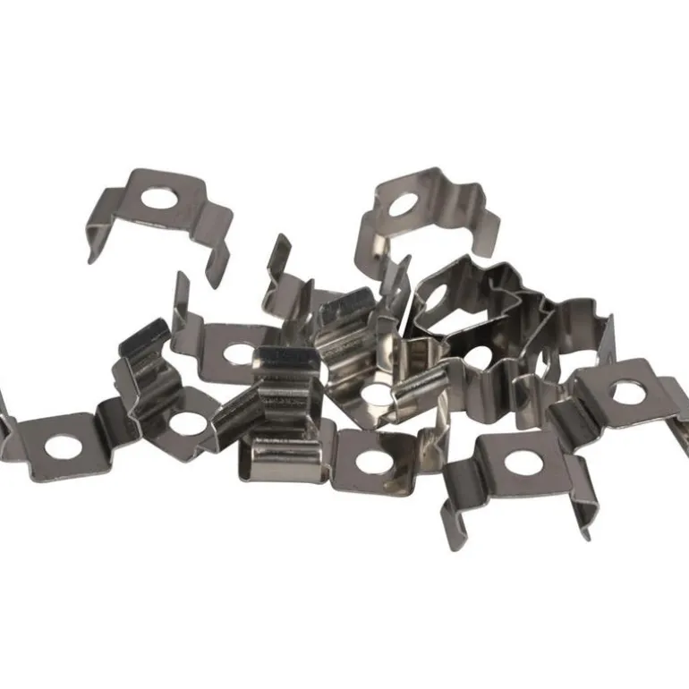 Ruostumattomasta teräksestä valmistettu kiinnike Neon Mini LED-nauhan kiinnittämiseen.