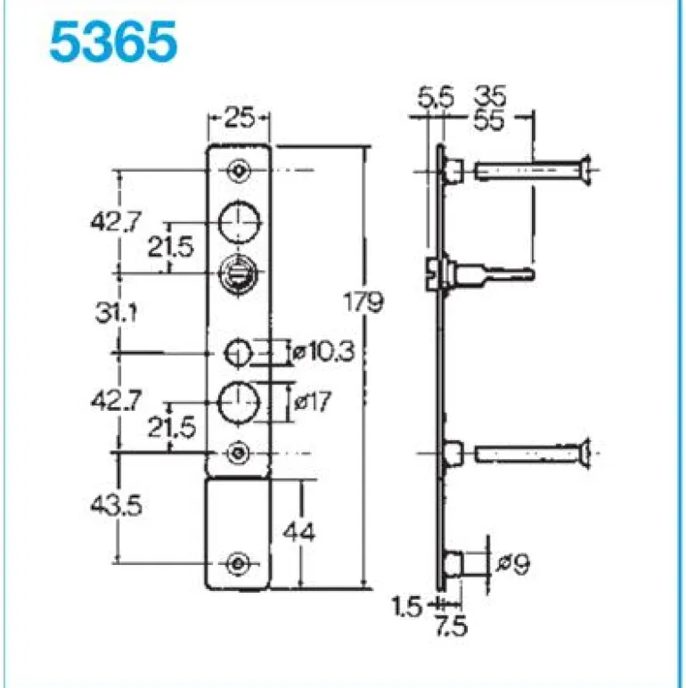 ASSA Fix 5365 on kiinnityslevy, jota käytetään asennettaessa kytkettyyn kaareen. Turvakahvalle ASSA 8350 S.