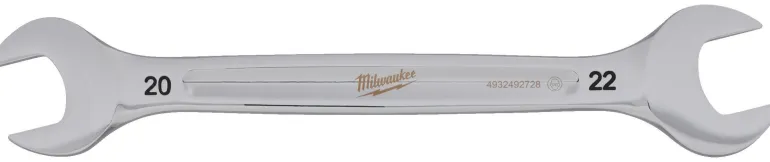 Milwaukeen kaksipäinen kiintoavain, jonka pyöristetty I-Beam-kahva takaa mukavan otteen ja ohut pään muotoilu mahdollistaa pääsyn ahtaisiin työtiloihin. Mustetäytetyt kokomerkinnät helpottavat ja nopeuttavat koon tunnistamista ja kromipinnoite estää kulumisen ja ruostumisen.