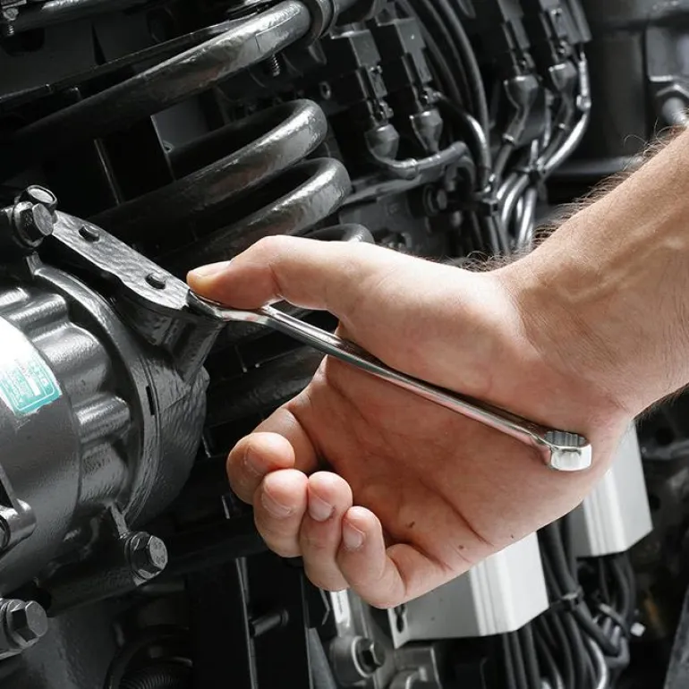 Kiintoavain, taivutettu 15°, oteleveys 19 mm, OGV-profiili ja 12-kulmainen silmukkapää voimakkaaseen kiristämiseen.