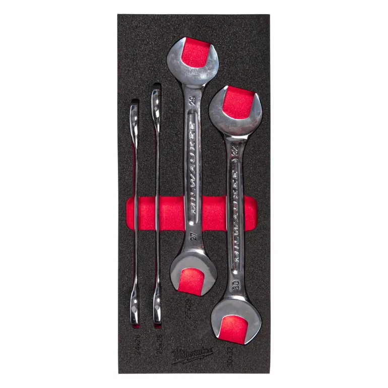 10-osainen kiintoavainsarja laadukkaassa vaahtomuovialustassa. Kaksipäisten kiintoavaimien pyöristetyt I-Beam-kahvat takaavat mukavan otteen ja ohut pään muotoilu mahdollistaa pääsyn ahtaisiin työtiloihin. Mustetäytetyt kokomerkinnät helpottavat ja nopeuttavat koon tunnistamista ja kromipinnoite estää kulumisen ja ruostumisen.