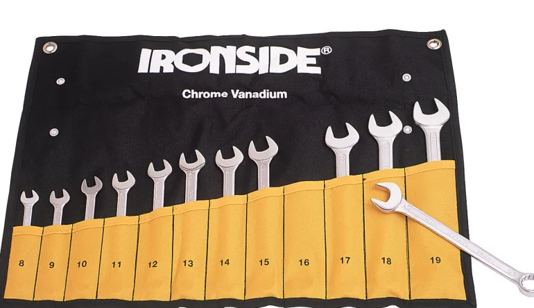 Kromattua kromi-vanadiiniterästä Sama koko molemmissa päissä. Lenkkipää kallistettu 15º, kaksitoistakulmainen.