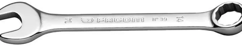 Facom 39.10 on lyhyt kiintolenkkiavain, taivutettu 15°. Oteleveys 10 mm, OGV-profiili, 12-kulmainen silmukkapää voimakkaaseen kiristämiseen.