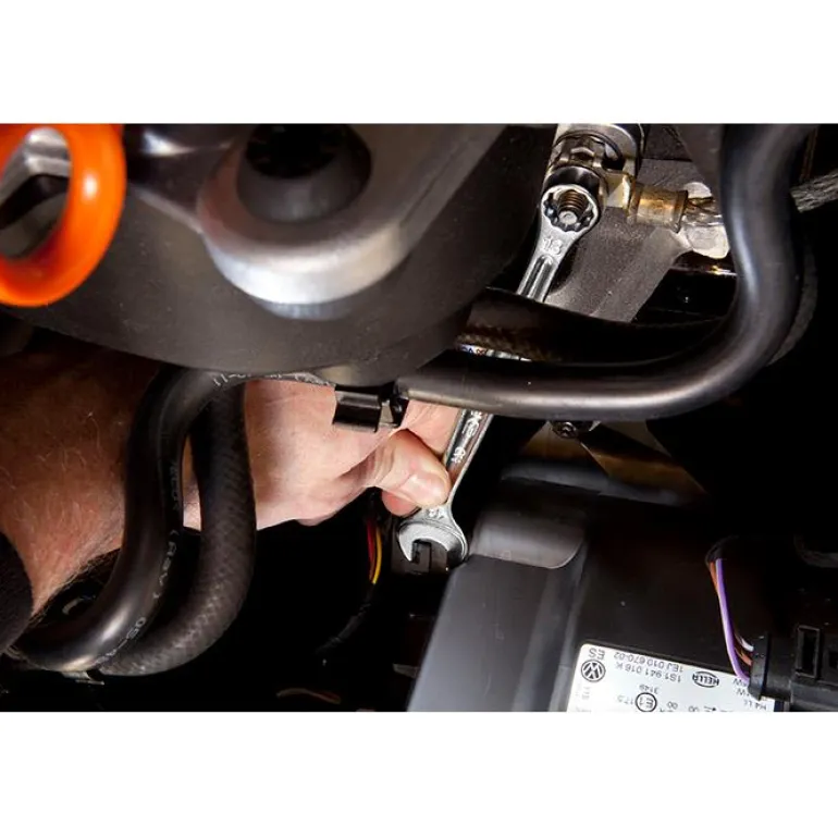Lyhyt kiintolenkkiavain, taivutettu 15°. Oteleveys 10 mm, OGV-profiili, 12-kulmainen silmukkapää voimakkaaseen kiristämiseen.