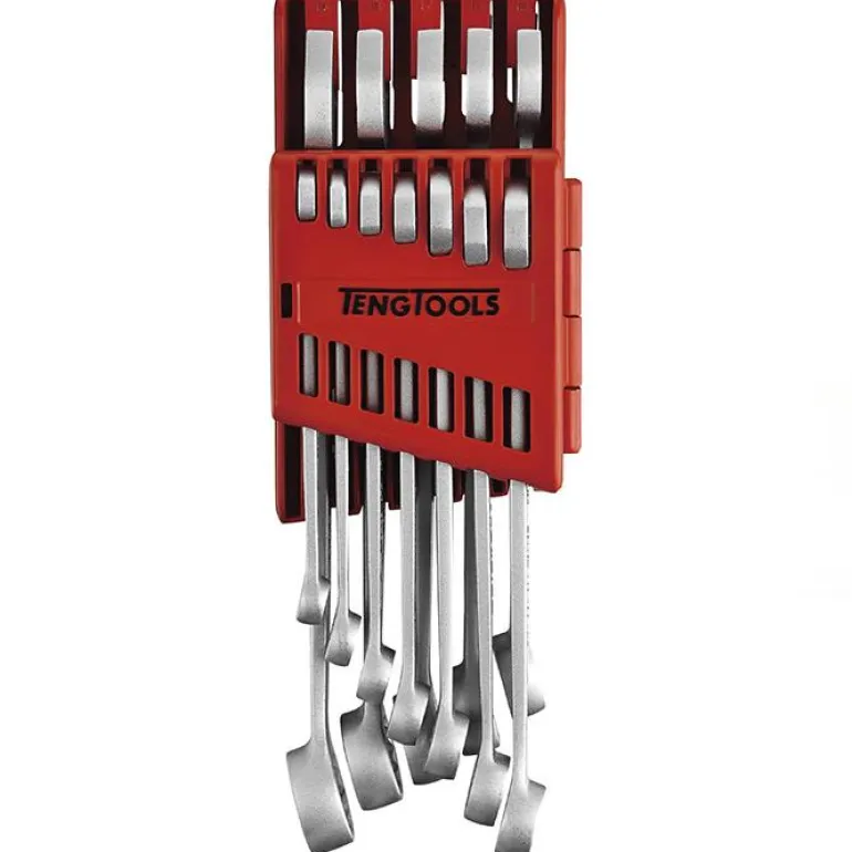 Teng Tools 8512A on 12-osainen kiintolenkkiavainsarja kromivanadiiniteräksestä. Sama koko molemmissa päissä. Kaksitoistakulmainen rengaspää, joka on taivutettu 15 astetta. Avoin pää on varustettu liukuesteellä ja liukastumista estävällä uralla ja varsi on kartioitu päistä paremman mukavuuden takaamiseksi.