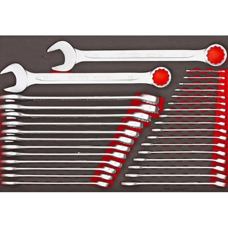 31-osainen lenkkiavainräikkäsarja. Suorat avaimet, avainkoko 8–19 mm.
