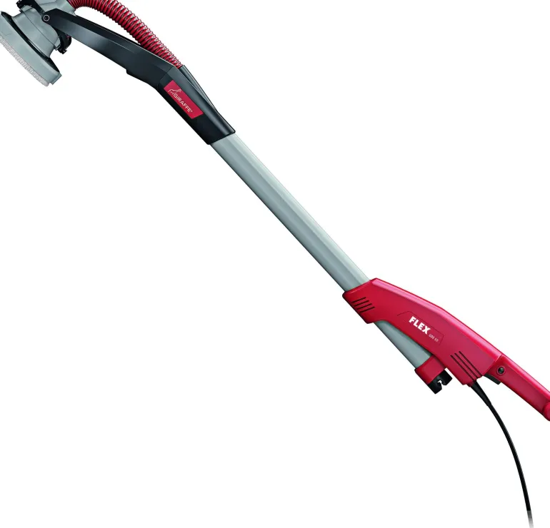 Flex GDE10 on seinä- ja kattohiomakone, Kirahvi, betonille, vaihdettavalla pääjärjestelmällä. Erittäin helppokäyttöinen, helppokäyttöinen ja kevyt kone, joka tekee työstä vähemmän rasittavaa ja enemmän ergonomista. Varustettu innovatiivisella vaihdettavalla pääjärjestelmällä, jossa on reunasegmentit. Hiomapään voi kiinnittää ja irrottaa yhdellä napsautuksella. Helppo ohjata, sillä paino jakautuu optimaalisesti moottorin ja hiomapään välillä. Suuret tilat ja jopa 3,40 m korkeat huoneet voidaan työstää GDE10:llä.