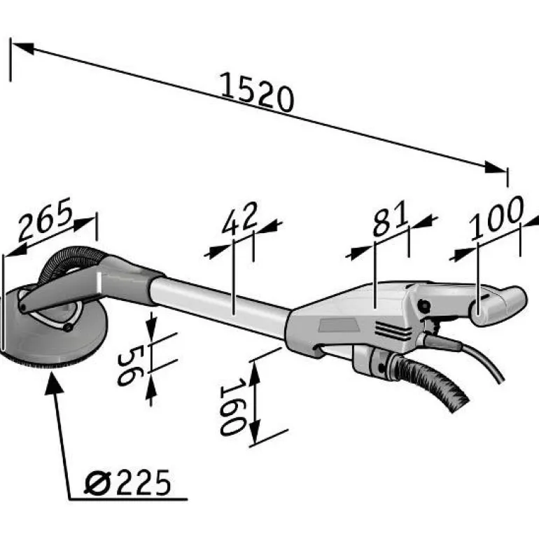 500 W:n kirahvihiomakone, joka tekee kattojen, seinien ja lattioiden hionnasta helppoa. Hiomakoneen joutokäyntinopeus on 1650/min ja levyn enimmäishalkaisija 225 mm.