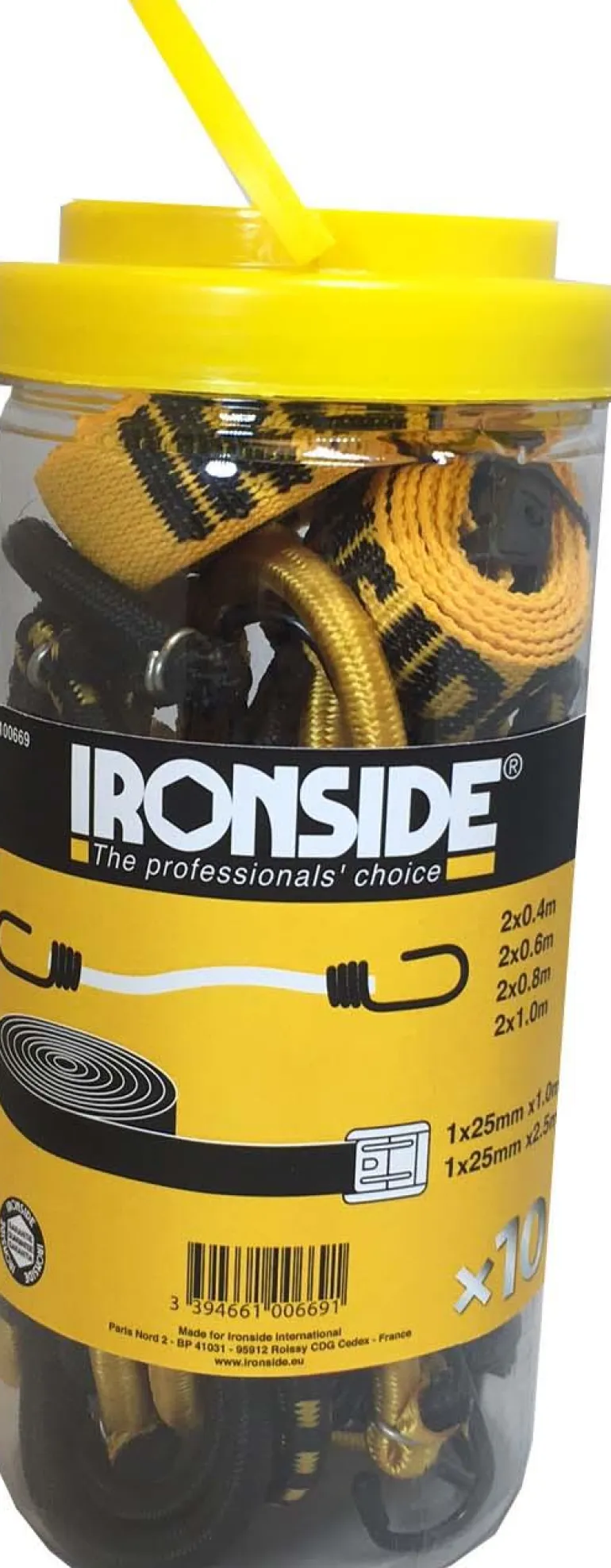 Kiristyshihnasarja, joka koostuu kahdesta 100 cm ja 250 cm kiristyshihnasta ja kahdeksasta matkatavarahihnasta.