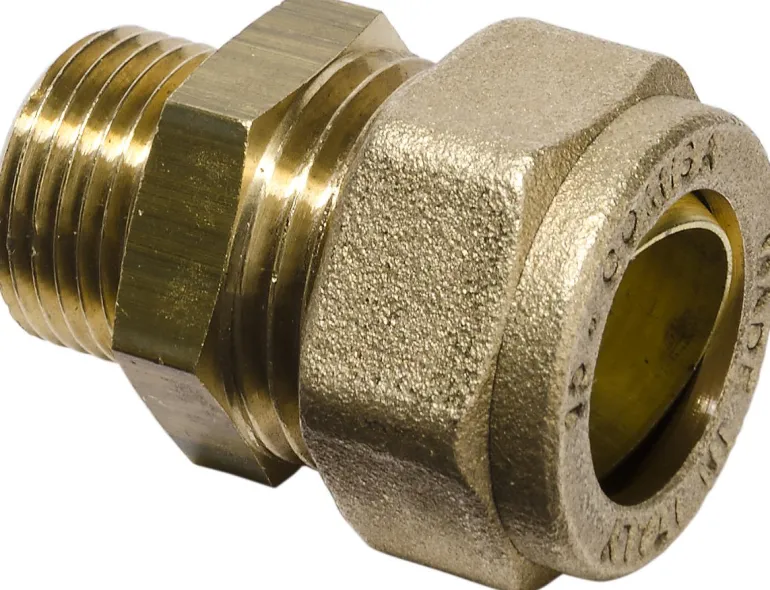 Kiristysrengasliitin PEXille. Suora, ulkokierteellä.