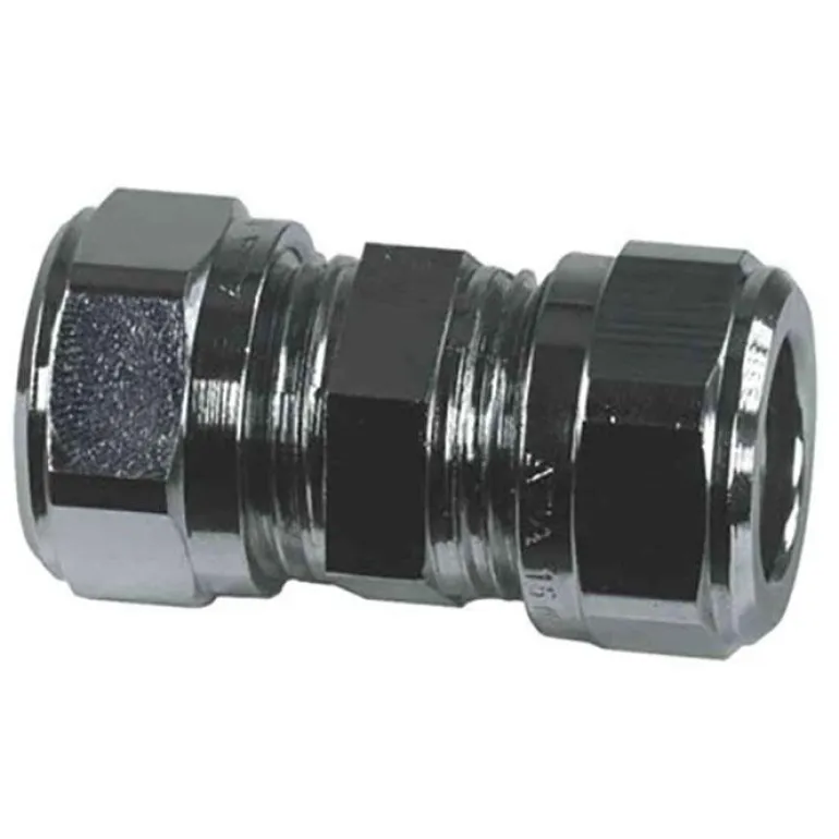 Gelia 3006111012 on suora kromattu kiristysrengasliitin, jossa on tukiholkki. Mukana tukiholkki.