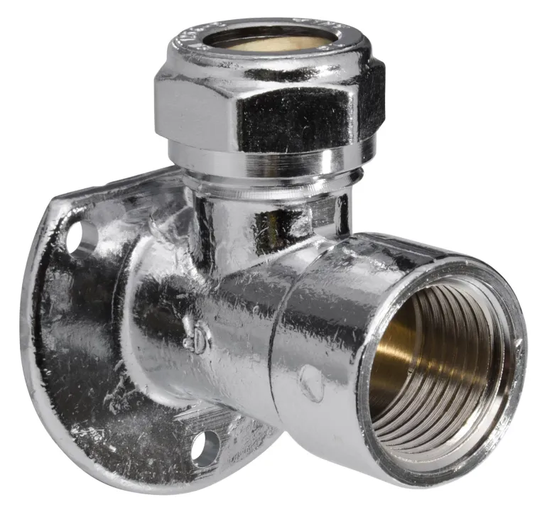 Kiristysrengasliitin venttiilikiinnikkeellä. Kulma 90° ja tukiholkki.