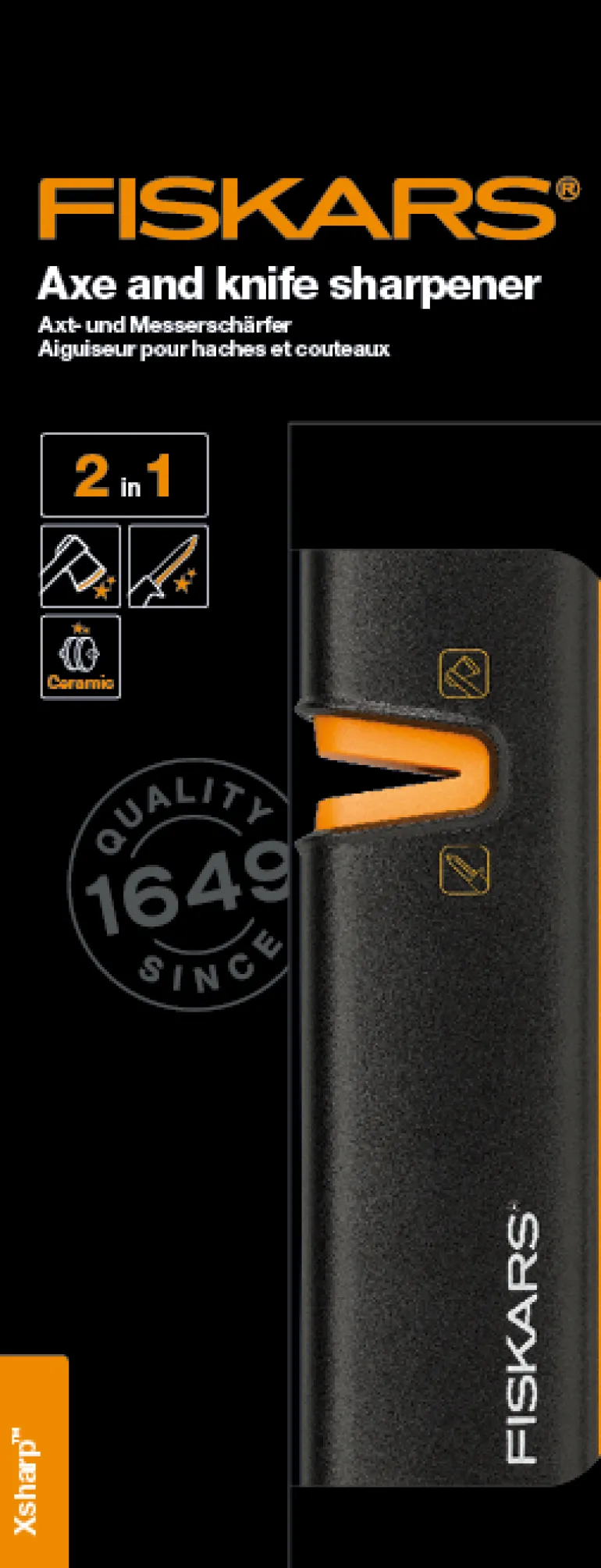 Säännöllinen huolto pitää Fiskarsin kirveet terävinä ja turvallisina pidempään. Kaksi pintaa yhdessä. Keraaminen hiomakivi ei jätä rumia jälkiä veitseesi tai kirveeseesi. Optimoitu hiontakulma ja mukava kuljettaa mukana.