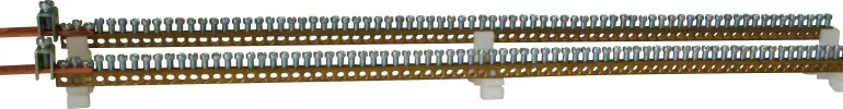 PE-N-kokonaisuus, joka koostuu ruuviliittimistä DIN-kiskoon asennusta varten (sisältyy PE-N-tarvikkeeseen NPB ja NNI-osaan).