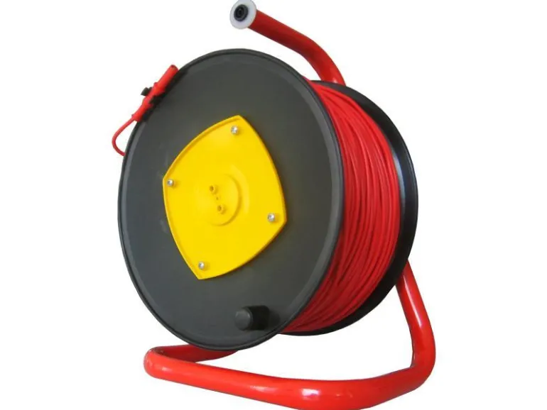 Koejohto on asennettu käytännölliselle kaapelikelalle, joka pitää koejohdon järjestyksessä. Helppo rullata auki haluttuun pituuteen.