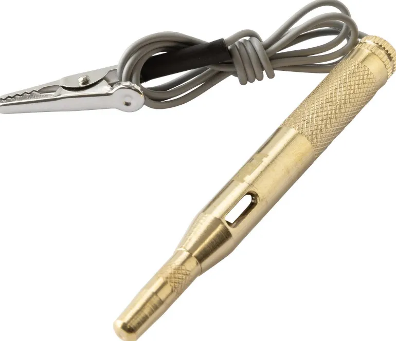 Pela 547375 on koetinkynä/jännitteenilmaisin 6–24V DC, joka mahdollistaa nopean vianmäärityksen ajoneuvojen sähköjärjestelmissä. Luotettava jännitteenkoetin/virtakynä on korvaamaton työkalu työpajassa, ja tämä testikynä auttaa sinua nopeasti paikantamaan oikosulut, rikkinäiset lamput ja sulakkeet jopa 24V DC sähköjärjestelmissä. Sisäänrakennetun lampun ansiosta näet heti, kun yhteys on muodostettu, ja kätevä krokotiilipuristin helpottaa maadoituksen liittämistä. Ihanteellinen virtalähteiden ja maadoituspisteiden testaamiseen ajoneuvoissa, veneissä ja koneissa. Kestävä rakenne ja helppokäyttöisyys – erinomainen apuväline jokaiseen työkalupakkiin.