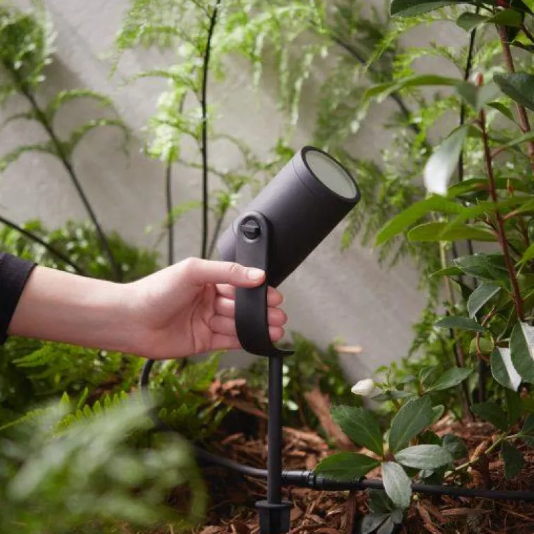 Philips Hue Lily on ulkokäyttöön tarkoitettu 8 W:n LED-spottivalo, joka tuottaa 800 lm:n valovirran. Liitä Lily-spottivalo haluamaasi vakiomalliseen pistorasiaan ja loihdi puutarhaan miljoonia erilaisia valkoisen tai värillisen valon sävyjä.