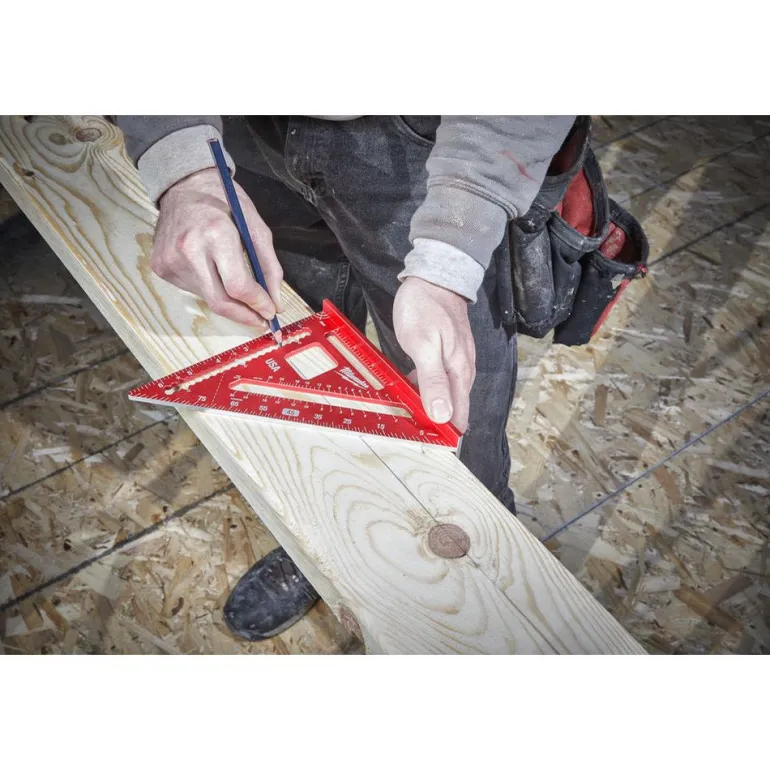 7″ tuuman pituinen kolmiosuorakulma, jossa tarkat merkintälovet jotka helpottavat merkintöjen tekemistä. Varustettu näkyvillä laseretsatuilla merkinnöillä.