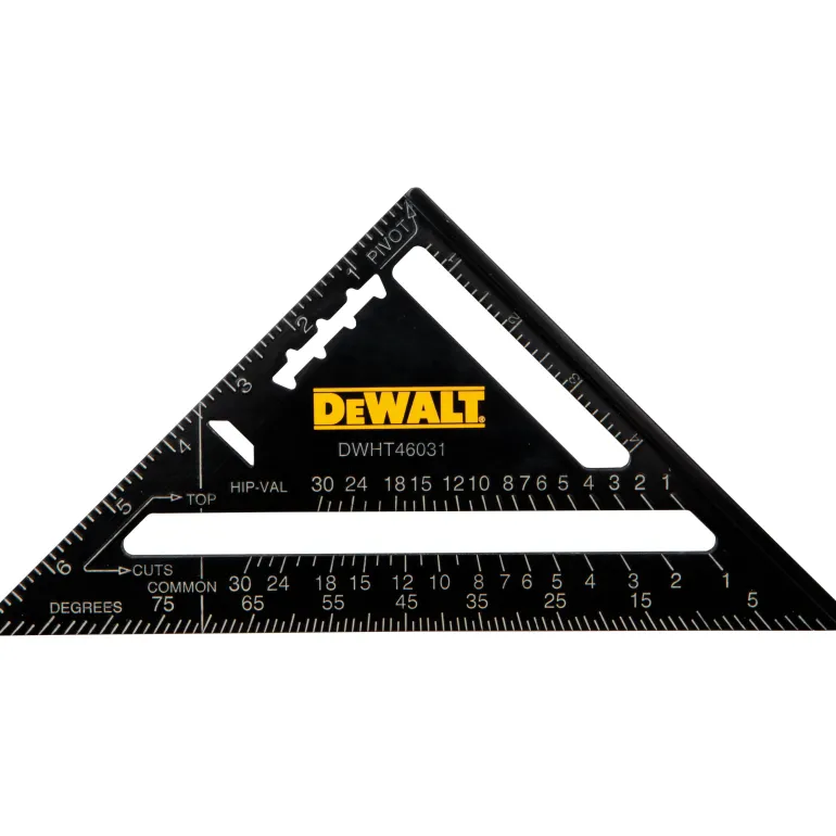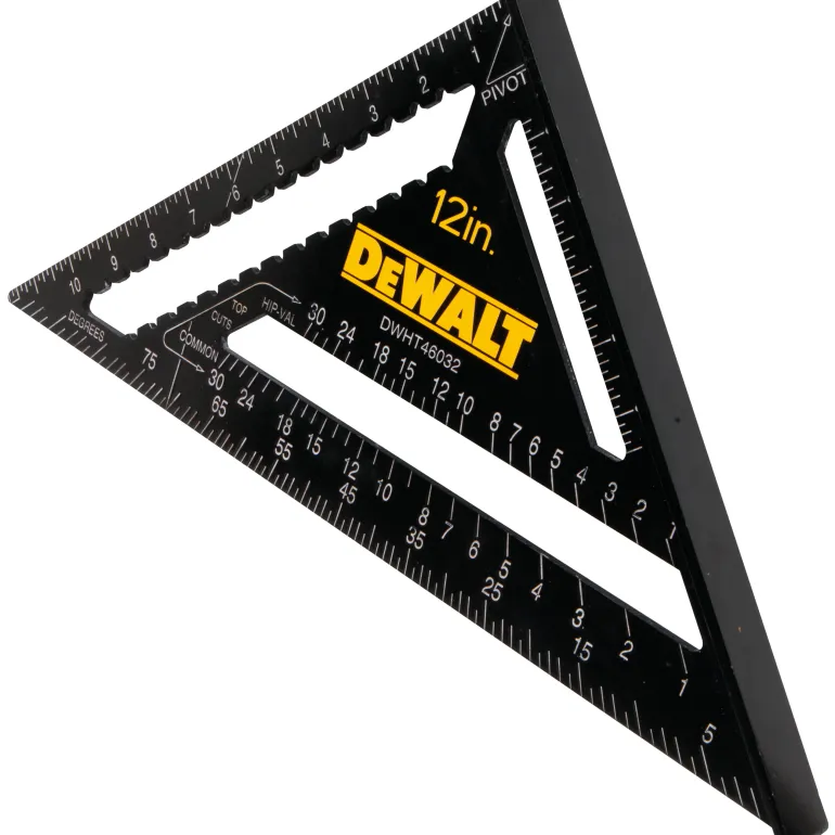 Dewalt DWHT46032-0 on 300 mm (12″) -kulmain, joka soveltuu käytettäväksi myös sahausohjaimena. Siinä on erityisen paksu alumiinirunko vaativaankin käyttöön sekä luettavuutta parantava, meistetty asteikko vastavärisin merkinnöin. Kulmaimen suuri pohja pysyy hyvin materiaaleja vasten. 90° kulma-asteikko asteen välein helpottaa kulmien mittausta.