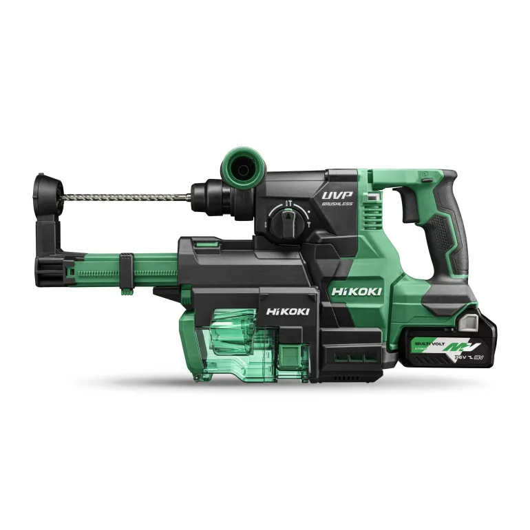 HiKOKI DH3628DA pölynpoistolla on tehokas 36 V-kombivasara suurella iskuteholla ja nopealla porauksella/talttauksella. Sisältää pölynpoistoyksikön HEPA-filtterillä, joka kerää 99.97% yli 0.3μm hiukkasista. Edistyksellinen UVP-tärinäteknologia suojaa käyttäjää tärinältä ja LED-ilmaisin helpottaa poraamista suoraan. Hiiliharjaton moottori antaa pidemmän käyttöajan latausta kohti, pidemmän työkalun eliniän ja vähentää huoltotarvetta.