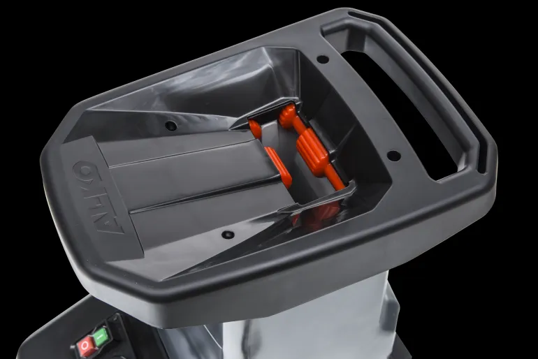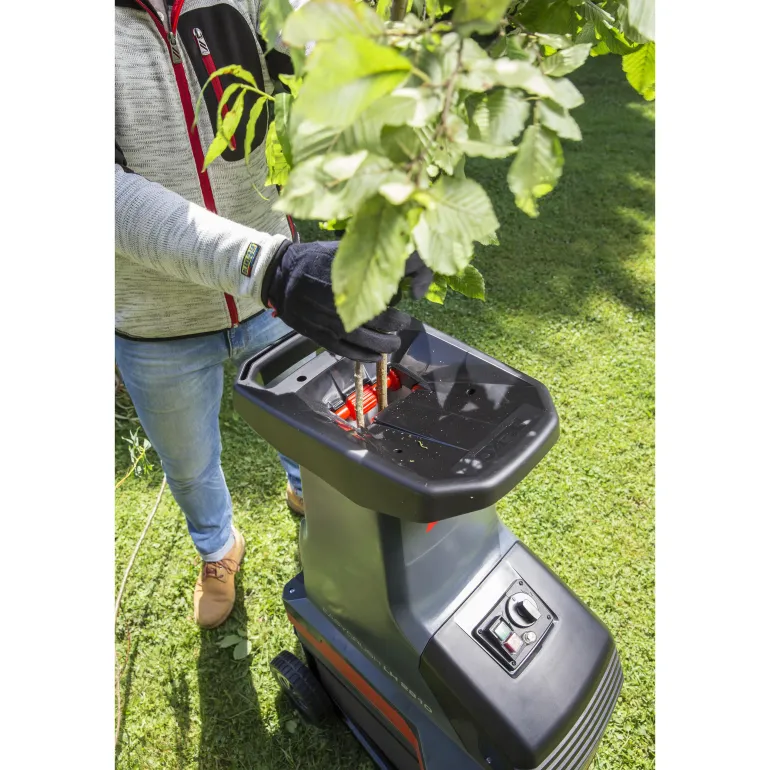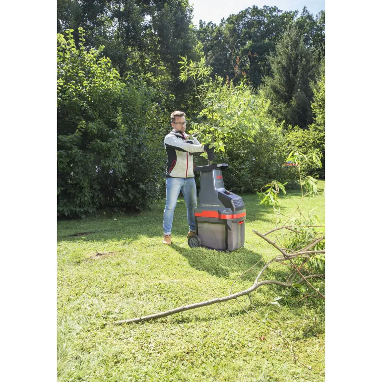 Tehokas kompostimylly telalla, joka katkoo jopa 40 mm oksat. Varustettu vakaalla alustalla, jossa on XL-pyörät ja suurella sisäänrakennetulla keräimellä, jossa on turvakytkimet ja ikkunat, jotta voit helposti tarkistaa keräimen täyttöasteen.
