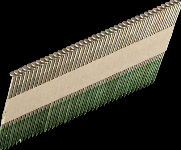 Suoranauhoitettu konenaula, 34°, sileä, kiiltävä. Sopii kaikkiin perustyökaluihin, jotka käyttävät 34°:n nauloja.