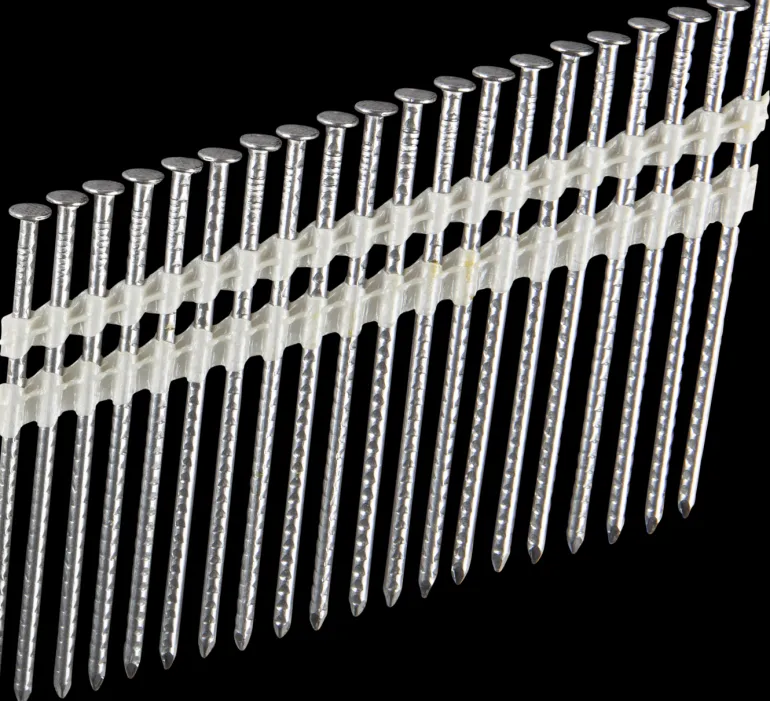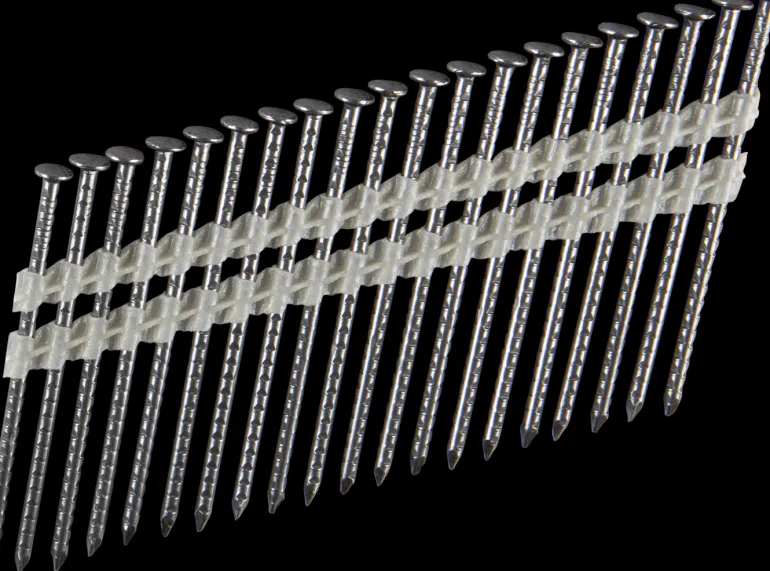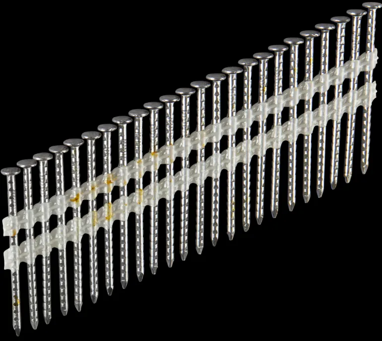 Suoranauhoitettu konenaula, 21°, urahakattu, kiiltävä. Sopii kaikkiin perustyökaluihin, jotka käyttävät 21°:n nauloja.