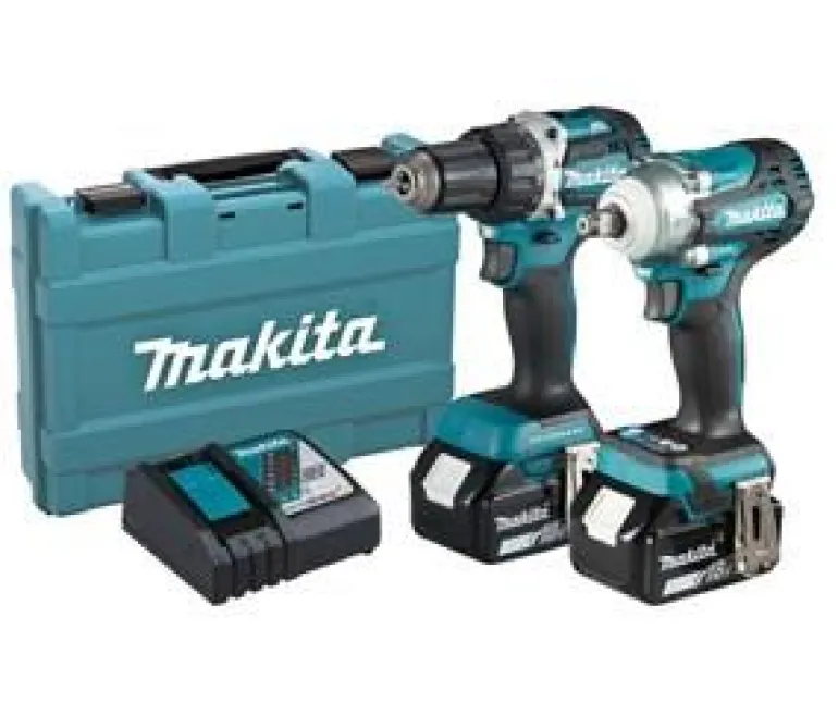 Hiiliharjaton 18 V:n konesarja. Sisältää pora/ruuvinvääntimen DDF484Z ja mutterinvääntimen DTW300Z.