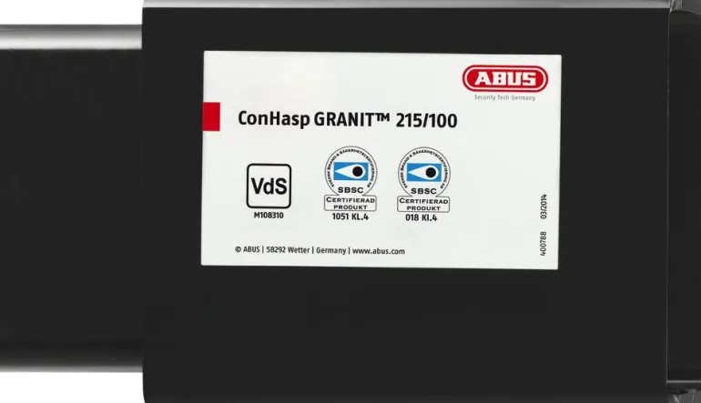 ABUS-konttilukko Granit -riippulukolla 37RK/70HB100 Luokka 4. Konttilukko on valmistettu erittäin kestävästä teräksestä ja siinä on kaksiosainen rakenne, joka lukitaan riippulukolla 37RK/70HB100, 37/55HB100 tai 83/80HB100.