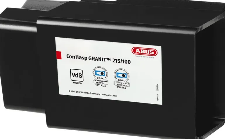 ABUS-konttilukko Rock 83/80HB100 -riippulukolla ilman sylinteiä, Luokka 4. Valmistettu erittäin kestävästä teräksestä, erityisellä hitsausmenetelmällä turvallisuuden lisäämiseksi.