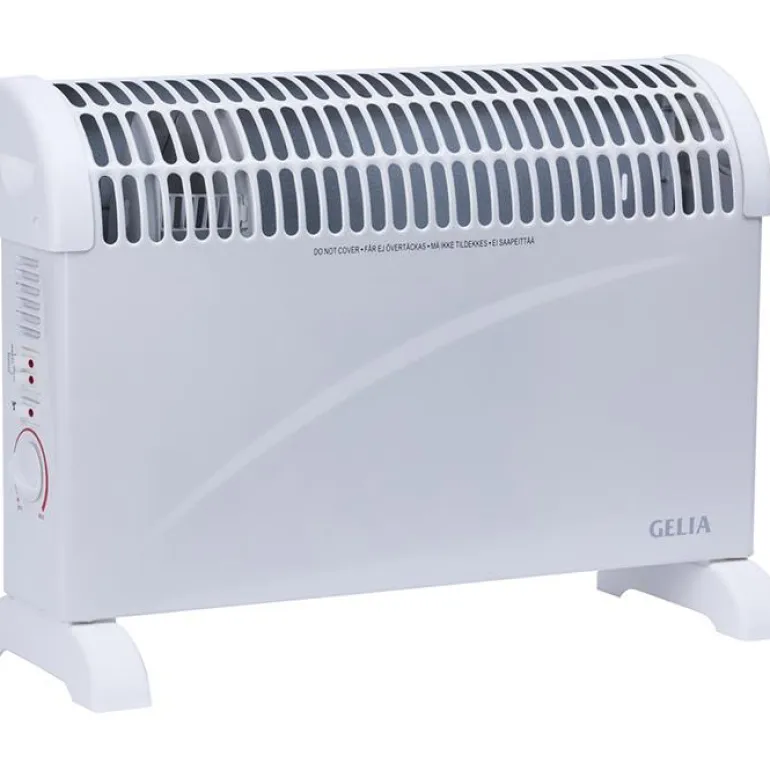 Gelia TURBO on 2000W itsenäinen konvektorielementti, jossa on säädettävä termostaatti ja ylikuumenemissuoja. Elementissä on kolme tehotilaa ja tuuletin. Mukana jalat ja 1,4 m johto pistokkeella.