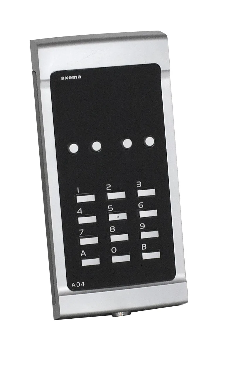 Kompakti koodilukko sisä- ja ulkokäyttöön erittäin tukevassa metallikotelossa. A04:n pääominaisuus on erittäin yksinkertainen ohjelmointimenettely, joka on mahdollista koodilukon neljän toimintopainikkeen ansiosta. Painikkeita 1, 2 ja 3 käytetään vastaavan koodin ohjelmointiin/muuttamiseen sekä 4. painiketta releen aukioloajan asettamiseen. Ohjelmoinnissa voidaan käyttää myös 6-numeroista pääkoodia.