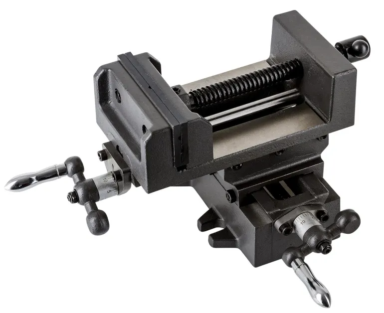 Koordinaattiruuvipuristin, joka on valmistettu korkealaatuisesta teräksestä, asteikot. Pitkittäis- ja poikittaisliikkeisiin, varustettu lukituksella.