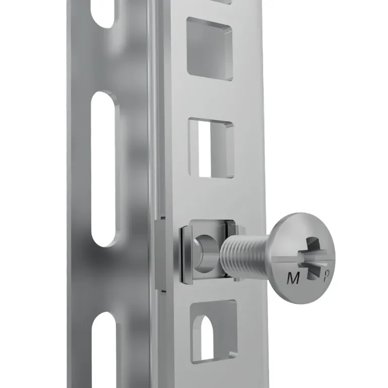 Korimutteri M6 ruuvilla M6x12 mm on tarkoitettu kiinnitettäväksi telineprofiilin 4-kulmaisiin reikiin.
