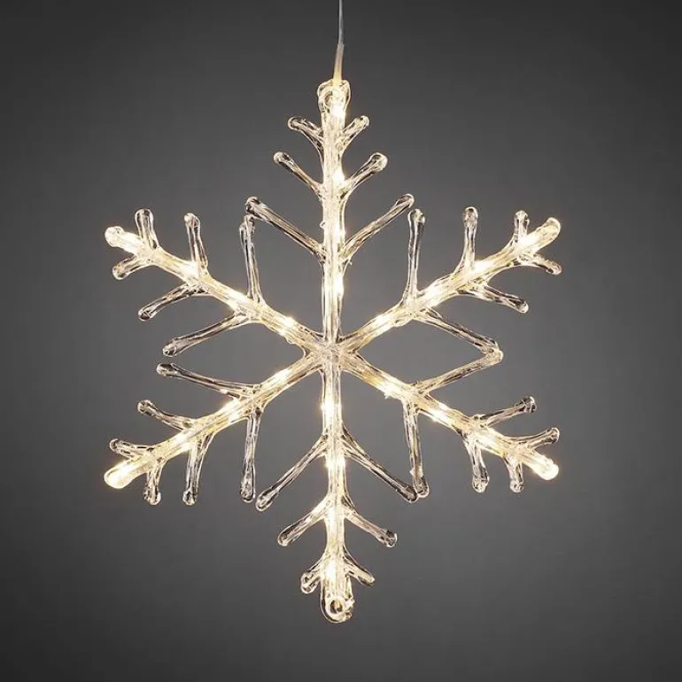 Konstsmide 4440-103 on lumihiutaleen muotoinen koristevalaisin. Lumihiutaleen halkaisija on 40 cm. Lämpimän valkoiset LED-valopisteet. Sopii ulkokäyttöön.