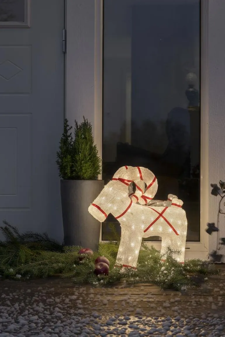 Akryylinen jouluvuohi, jonka liitäntäkaapeli on 5 m:n pituinen ja helppo asettaa puutarhaan.