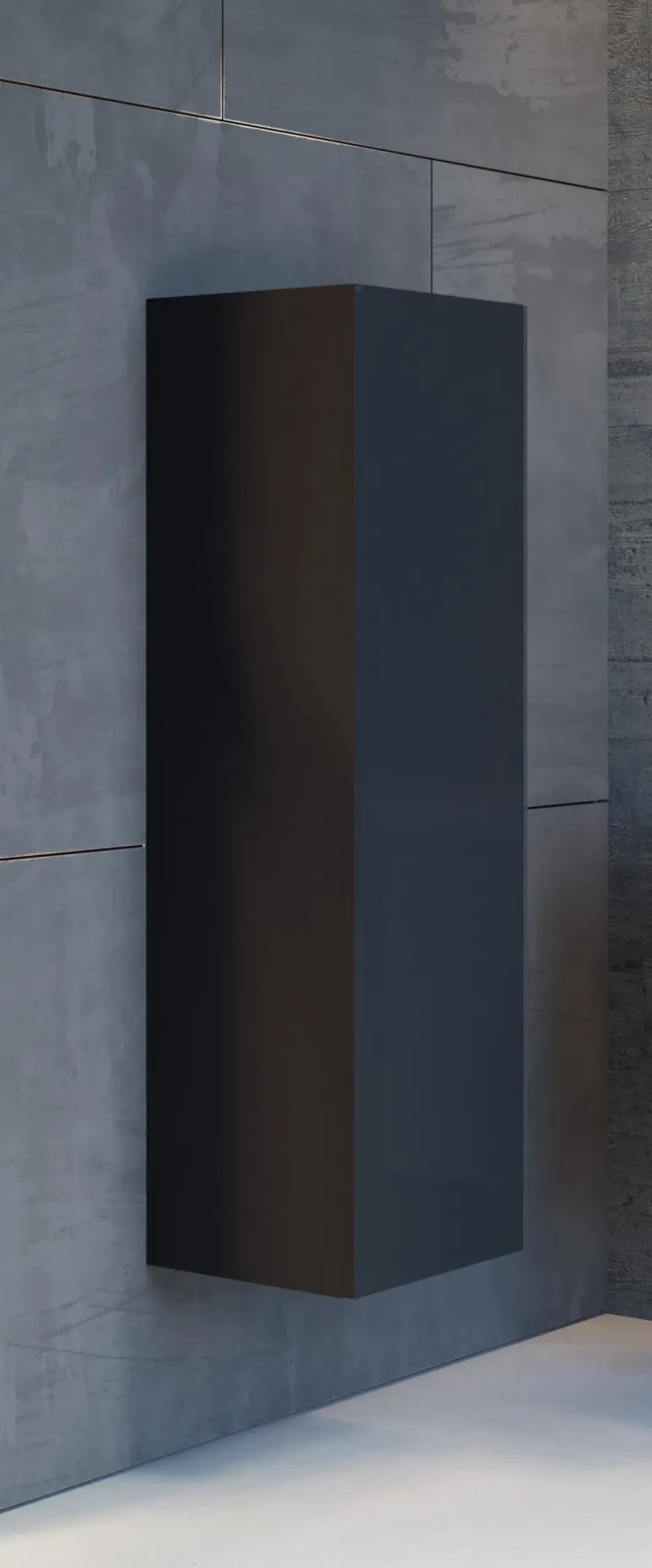 Korkea mattamusta kaappi, joka sopii yhteen Victoria-huonekalusarjan kanssa. Kaappi on varustettu 1 ovella, jonka saranat ovat vasemmalla, mutta se voidaan ripustaa myös oikealle.